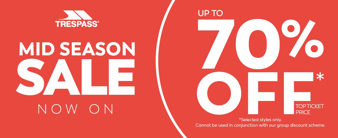 Get ready for adventure with the Trespass Mid Season Sale! Discover our fresh Spring/Summer collection in-store and enjoy up to 70% off top outdoor gear. Don’t miss your chance to upgrade your kit for less – once it’s gone, it’s gone!